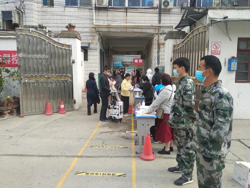 “同學們,請排好隊,與前面的人保持1米以上的距離。”4月20日上午,在鄲城縣華宇中學,來自洺南街道基干民兵應急分隊的民兵們正在現場維護秩序,幫助該校做好九年級學生復學入校防疫工作。
