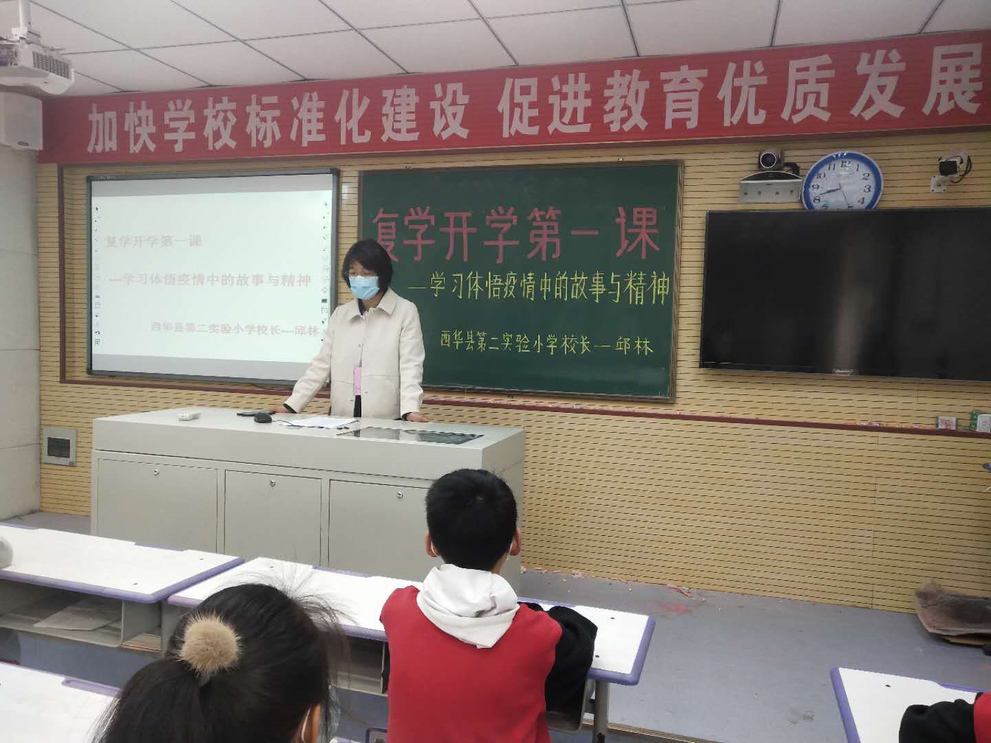 4月27日,根據(jù)防控疫情形勢好轉(zhuǎn),按照上級(jí)有關(guān)部門要求,西華縣第二實(shí)驗(yàn)小學(xué)做好了各項(xiàng)安全準(zhǔn)備工作,四、五、六年級(jí)返校復(fù)學(xué)。開學(xué)的第一課的主題為“生命可貴,安全第一”。