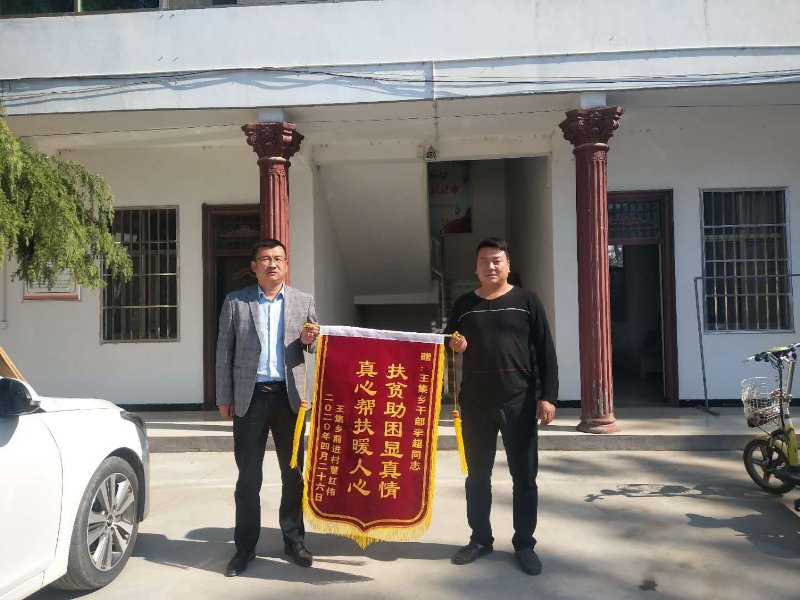 “扶貧助困顯真情,真心幫扶暖人心!”4月26日,太康縣王集鄉(xiāng)前進(jìn)村未脫貧戶董紅偉將這面錦旗送到幫扶人李超手中。“送上這面錦旗,終于了卻了我的一個(gè)心愿,真是非常感謝李超同志,不辭勞苦,多次到我家進(jìn)行幫扶,這不,又幫我介紹了一份工作,今年我脫貧沒任何問題了!”董紅偉笑著說。