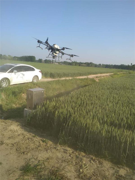 現在正值小麥孕穗抽穗期的關健時間節點,也是各種病蟲害的高發期,做好這一時期的田間管理工作對確保小麥的豐收至關重要。將殺蟲劑、殺菌劑、微肥、抗旱劑等混合加水噴霧能同時實現防治小麥病蟲害,預防干熱風,防治倒伏和增加千粒重的效果。利用無人機作業,提高了工作效率,提升了用藥效果,降低了勞動成本。