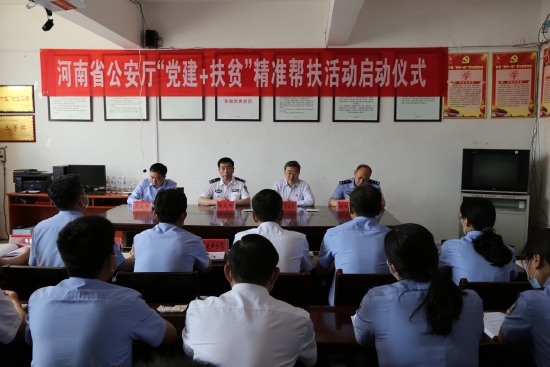 啟動儀式上,全體人員面對黨旗,高舉右手,莊嚴宣誓,重溫入黨誓詞。孫建賓宣讀省公安廳成立精準幫扶小分隊臨時黨支部的通知;省公安廳制證中心主任、精準幫扶工作隊臨時黨支部書記袁善亮代表臨時黨支部作承諾發言;省公安廳駐白集鎮尹莊行政村第一書記王萌利匯報了駐村幫扶和“黨建+扶貧”工作開展情況。