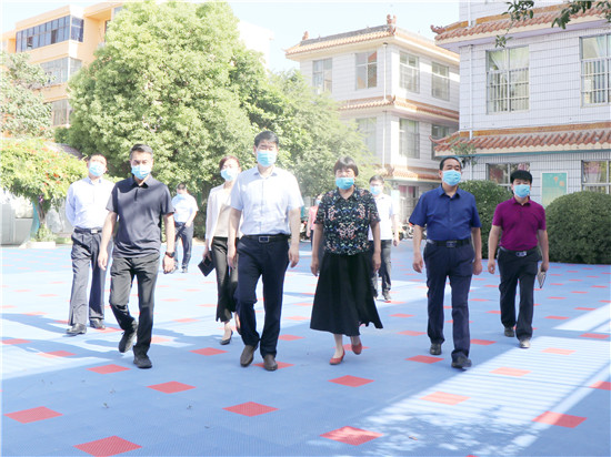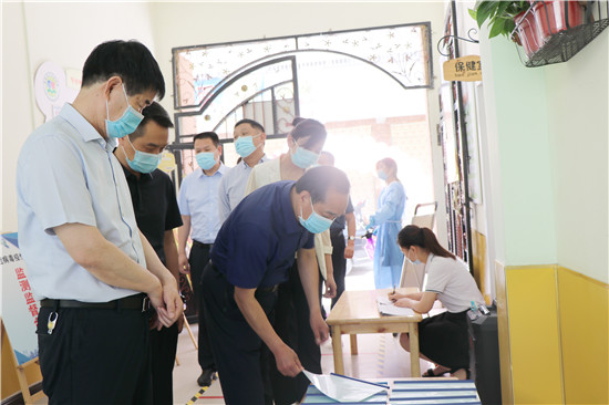 當天上午,縣政府辦副主任楊培爭、教體局局長劉現營、洺南黨工委書記張杰、疾控中心主任張吉志、公安局副政委朱衛兵、教體局副局長劉廣鋒及衛健委、食藥局相關負責人先后深入實驗幼兒園、小天鵝幼兒園、弘月幼兒園、第二實驗幼兒園等城區幼兒園,調研指導返園復學工作。