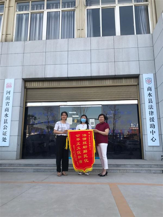 “謝謝法律援助中心幫我解除了婚姻的痛苦?!?月4日,漯河市召陵區老窩鎮小宋村31歲的已婚青年張素平一邊將一面繡著“法律援助解民憂,公平正義促和諧”的錦旗送給商水縣法律援助中心負責人,一邊表示感謝。