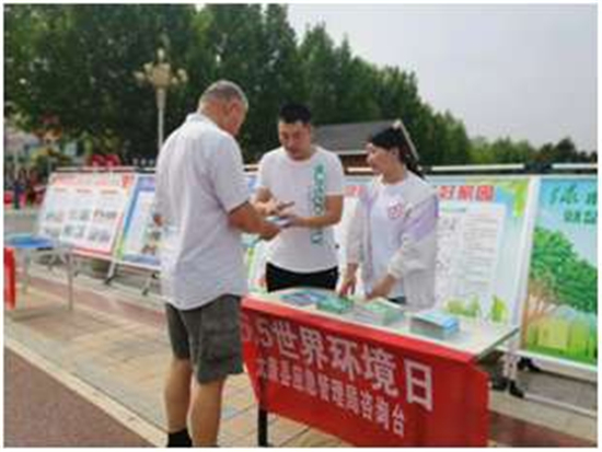 活動現場,天氣炎熱,應急管理局工作人員堅守宣傳咨詢臺崗位,大力宣傳環保知識,向現場群眾發放《生態環境知識宣傳手冊》、環保宣傳彩頁、安全生產宣傳手冊等,倡導大家養成節約能源、綠色消費、低碳出行等環保生活習慣,踐行綠色生活理念。
