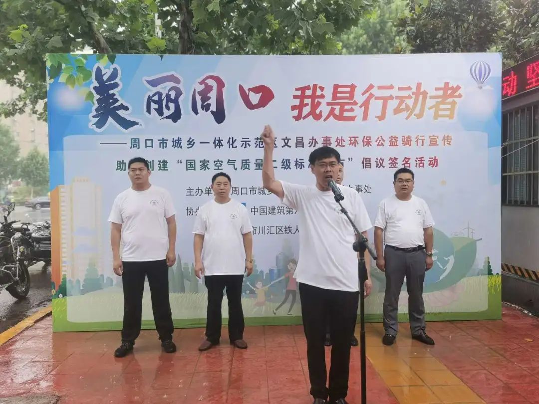 6月9日,由文昌辦事處主辦的“美麗周口 我是行動者”環保公益騎行宣傳活動舉行。市城鄉一體化示范區管委會副主任張曉出席活動,區直相關責任單位、文昌辦事處及中國建筑第八工程局和周口市川匯鐵三協會志愿者們參加活動。