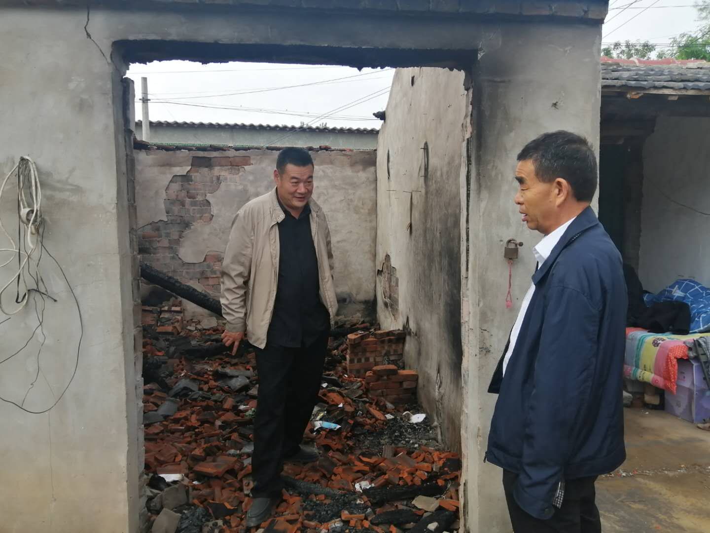 聽完情況后,督導組立刻和駐村工作人員一起到李洪范家查看情況,現場主屋已經全部燒毀,屋里到處是瓦礫......李洪范站在被燒毀的房屋里,表情木納的自言自語道“燒得一干二凈,什么都沒了,這以后咋弄呀。”現場詢問其生活情況時,李洪范說,“當天,鄉里邊就送來了米、油和錢。村長也送來了幾件衣服,現在就是沒有地方住。”