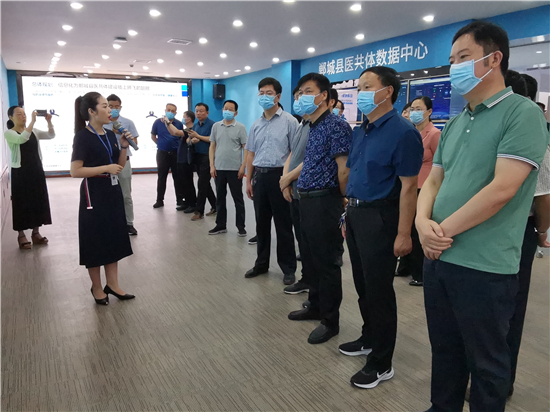 當日上午9時,5個縣市的負責同志來到鄲城之后現場組成參觀團,進入鄲城縣政府投資3500萬元興建的全民健康信息化服務中心,并參觀了第二醫療健康服務集團(鄲城中醫院)的醫共體運營管理中心、醫保監管中心和財務監管中心“三大運營管理中心”。