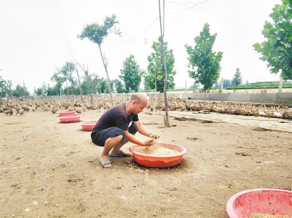 6月11日,沈丘縣石槽集鄉(xiāng)王湖村村民在專業(yè)養(yǎng)殖合作社內(nèi)給鴨群喂食。近年來,該縣大力引導(dǎo)農(nóng)民發(fā)展特色產(chǎn)業(yè),幫助農(nóng)民穩(wěn)定增收,為鞏固提升脫貧成果打下堅實(shí)基礎(chǔ)。