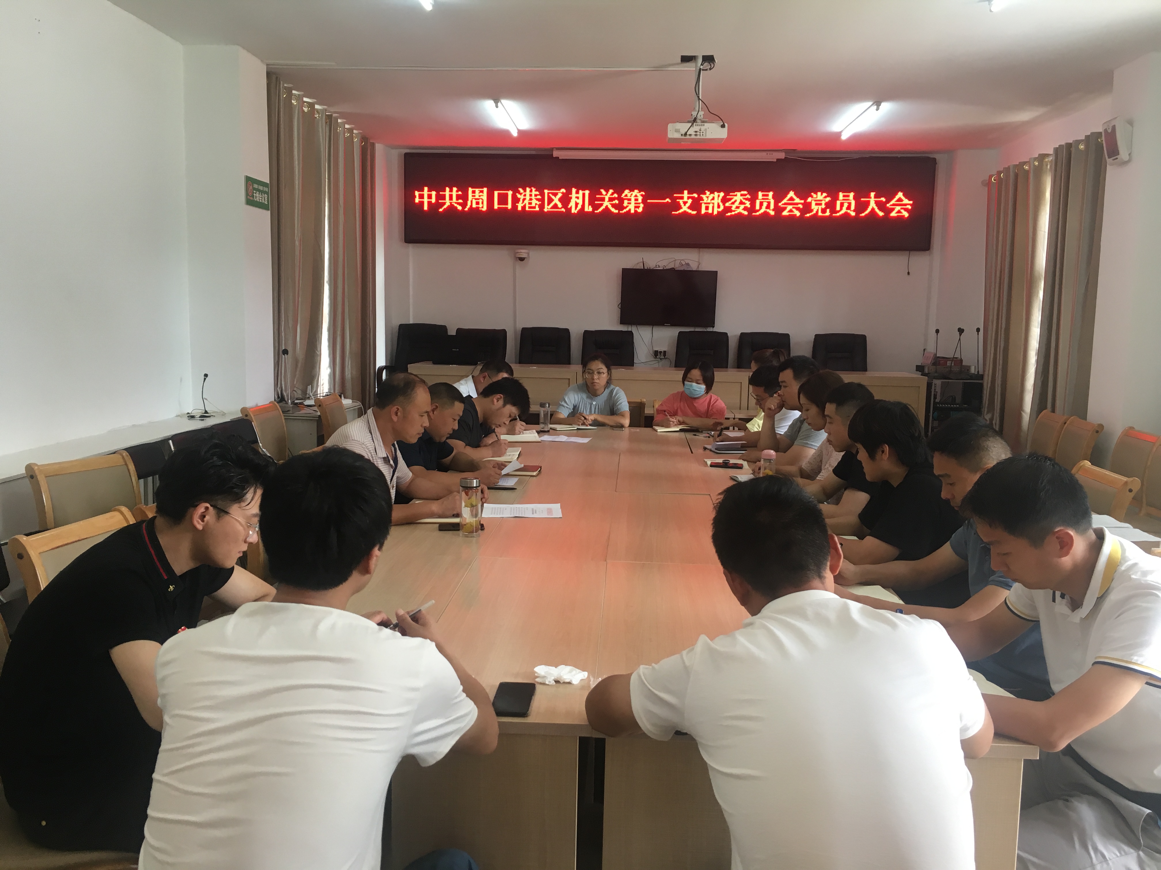 會上,組織委員靳宇傳達(dá)了《中共周口港區(qū)機(jī)關(guān)黨委關(guān)于組織開展港區(qū)機(jī)關(guān)黨章黨規(guī)黨紀(jì)教育月活動的通知》;研究通過了陳兵磊任第一黨小組組長,趙磊任第二黨小組組長事宜;對全體黨員2020年上半年工作情況進(jìn)行民主評議;周繼增為全體黨員上了一堂敢于擔(dān)當(dāng)、才有作為的微黨課;最后全體黨員重溫了入黨誓詞。