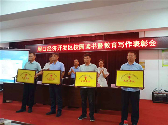 7月3日,周口經(jīng)濟開發(fā)區(qū)舉行了校園讀書暨教育寫作表彰會。會議表彰了開發(fā)區(qū)實驗學(xué)校等8個“書香校園”,開來路小學(xué)二年級等18個“書香班級”、祁倩倩等30名“教師閱讀之星”,授予開發(fā)區(qū)第一小學(xué)等4個學(xué)校開發(fā)區(qū)“教育寫作先進(jìn)單位”、李雅等11名教師為開發(fā)區(qū)教育系統(tǒng)“十佳作者”、張艷春等17人為開發(fā)區(qū)教育系統(tǒng)“優(yōu)秀作者”稱號。