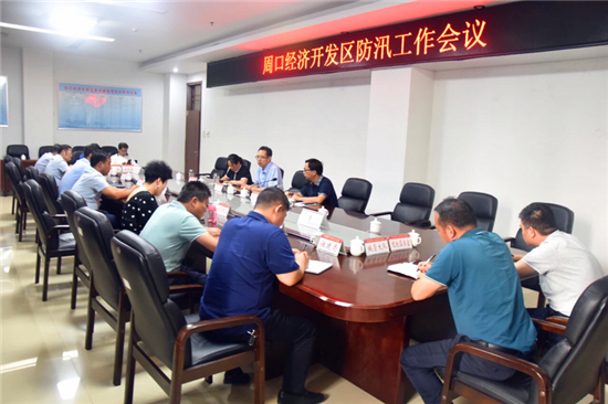 7月15日,開發區黨委書記王文峰主持召開防汛工作專題會議,研究部署近期防汛工作。開發區副調研員趙愚、王靜等參加會議。