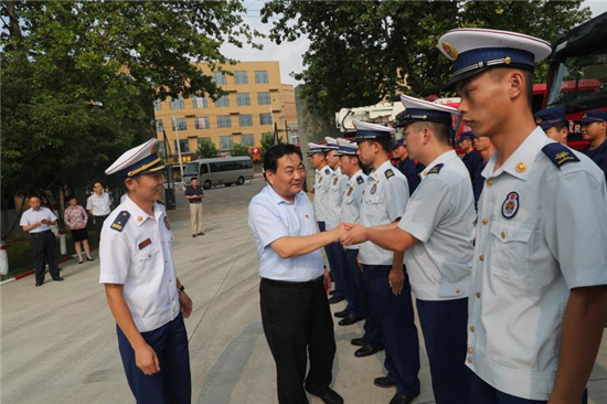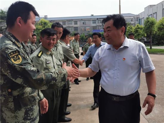 王國璽一行先后來到縣人武部、武警中隊、消防隊進行走訪慰問。每到一處,王國璽一行都與部隊官兵一一握手,向他們致以親切問候。