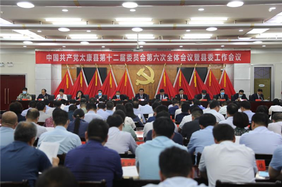 8月18日,太康縣在綜合樓一樓會議室召開中國共產黨太康縣第十二屆委員會第六次全體會議暨縣委工作會議。會議主要任務是:高舉習近平新時代中國特色社會主義思想偉大旗幟,深入學習貫徹習近平總書記視察河南重要講話精神,全面落實省委十屆十一次全會暨省委工作會議和市委四屆十一次全會暨市委工作會議部署要求,認真總結全縣2019年以來的工作,深入分析當前面臨的形勢和機遇,對扎實做好“六穩”工作、全面落實“六保”任務作出全面安排部署,動員全縣上下堅定信心、攻堅克難,敢于擔當、務實重干,奮力奪取決勝全面小康社會、決戰脫貧攻堅的全面勝利,開創高質量跨越發展新局面,在中原更加出彩中繪就太康特色添彩畫卷!縣委書記王國璽主持會議并代表縣委講話。縣委副書記、縣長李錫勇代表縣委做工作報告。