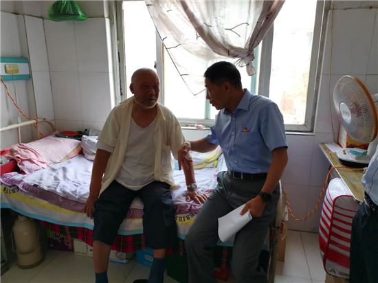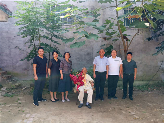 于闐鎮(zhèn)一行先后來(lái)到抗戰(zhàn)離休干部劉振國(guó)、趙隆云、謝振康、高天同家中走訪慰問(wèn),并送上鮮花、慰問(wèn)品等。每到一處,于闐鎮(zhèn)都與抗戰(zhàn)離休干部們親切交談,詳細(xì)詢問(wèn)老人們的生活情況和身體狀況,一起重溫革命戰(zhàn)爭(zhēng)時(shí)期的崢嶸歲月,暢談時(shí)代發(fā)展變化,感恩現(xiàn)在幸福生活。他說(shuō),今年是中國(guó)人民抗日戰(zhàn)爭(zhēng)勝利75周年,正是因?yàn)榇蠹业脑⊙獖^戰(zhàn)才換得我們?nèi)缃竦男腋I睿魑皇敲褡宓挠⑿邸⑻档尿湴痢?箲?zhàn)離休干部身上體現(xiàn)了崇高的愛(ài)國(guó)主義精神和不屈不撓的民族精神,值得我們學(xué)習(xí)和傳承。93歲的老同志趙隆云激動(dòng)的說(shuō):“我經(jīng)歷了幾十場(chǎng)戰(zhàn)役,沒(méi)有想到能活到90多歲,感謝共產(chǎn)黨,感謝組織給了我今天安寧的生活。”