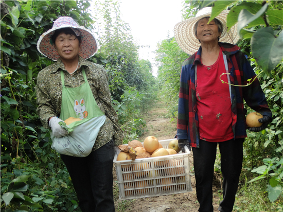 據(jù)家庭果樹農(nóng)場主肖紅偉介紹,這片果園面積260余畝,今年進(jìn)入盛果期,訂單產(chǎn)量達(dá)20余萬公斤。采取“黨支部+基地+合作社+貧困戶”經(jīng)營管理模式,帶動當(dāng)?shù)刎毨艄麍@季節(jié)性務(wù)工就業(yè)達(dá)26人,人均年工薪收入達(dá)1.3萬余元,使他們持續(xù)增收不返貧,鞏固脫貧成效,助力鄉(xiāng)村振興。