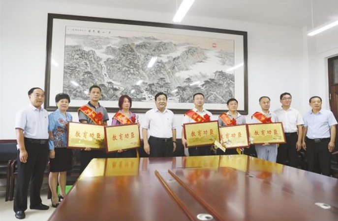 9月10日,太康縣委書記王國璽(左五)深入家印高中調研教育教學工作,看望劉桂華、沈東、劉建國、王予超、焦文林5位“教育功臣”,送去慰問金、鮮花和獎杯牌匾,并向全縣廣大教師和教育工作者致以節日的祝賀和誠摯的慰問。縣委常委、辦公室主任張雪芳,縣教體局黨組書記張俊峰、局長葛澤周,縣教體局黨組副書記、家印高中校長沈世弘,縣教體局副局長孫傳海等參加活動。圖為合影留念。