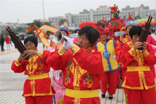 慶祝活動在舞蹈《開門紅》中拉開帷幕,鏗鏘有力的鼓錘敲出了莊稼人的夢想,敲響了新時代農民的希望。整場活動緊緊圍繞“三農”這一主題,歌曲、舞蹈、道情戲等形式多樣的節目輪番上演,展示出了農民豐收的喜悅。其中,《前進路上》《王金豆借糧》《慶豐收》這些獨具太康特色的節目,將活動推向了高潮,贏得了觀眾的陣陣掌聲。《美麗鄉村》《擼起袖子加油干》《莊稼院的歌》等歌曲唱出了廣大農民朋友對美好生活的向往。