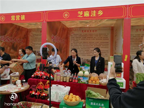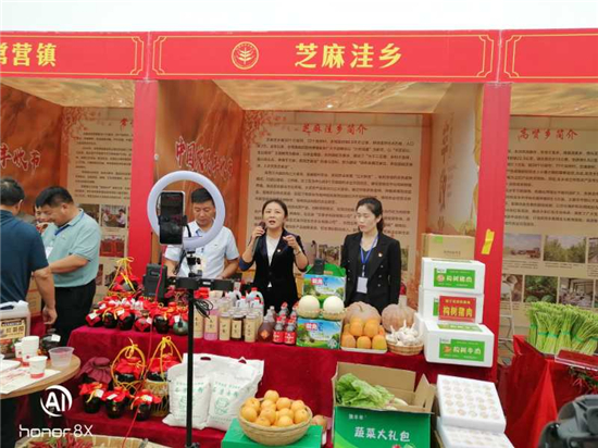 春種秋收,銀城大地,五谷豐登。9月22日上午,太康縣以“五谷豐登慶豐收、六村共建新家園”為主題的“2020年中國農民豐收節”慶祝活動在縣人民廣場隆重舉行。芝麻洼鄉黨委書記范慧萍在慶祝豐收節現場,利用皮箱楊村電商平臺現場直播帶貨,推介該鄉名、優、特農產品,成為活動的一大亮點。圖為直播帶貨現場。