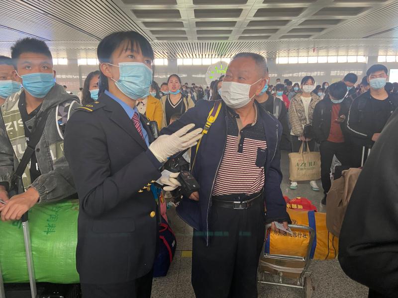 今年30多歲的王琪就是其中一名客運值班員。她家在濮陽市,今年6月份從高鐵許昌北站調到高鐵周口東站工作,她的主要工作是在旅客進入候車廳后,引導旅客有序排隊進入站臺,調配崗位人員,遇到旅客救助等突發狀況,及時處置。