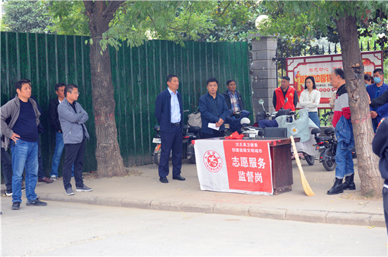 10月12日下午,沈丘縣衛健委機關全體人員在分包路段召開省級文明城市創建沖刺會。副處級干部、縣衛健委主任張治君就“創文”工作和分包路段的環境衛生綜合整治提出要求,全委上下必須進一步堅定信心,加大工作力度,聚焦短板弱項,對標對表,攻堅克難,全力沖刺,全面提升,確保省級文明城市創建決圓滿成功。圖為沈丘縣衛健委機關人員在分包路段打掃衛生。②18