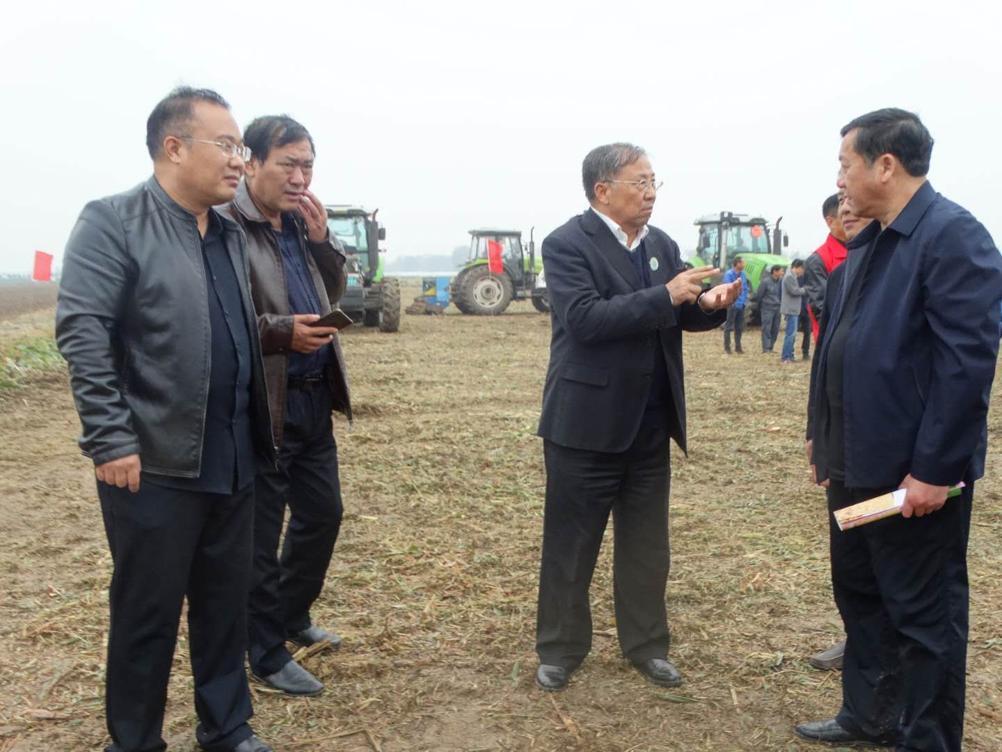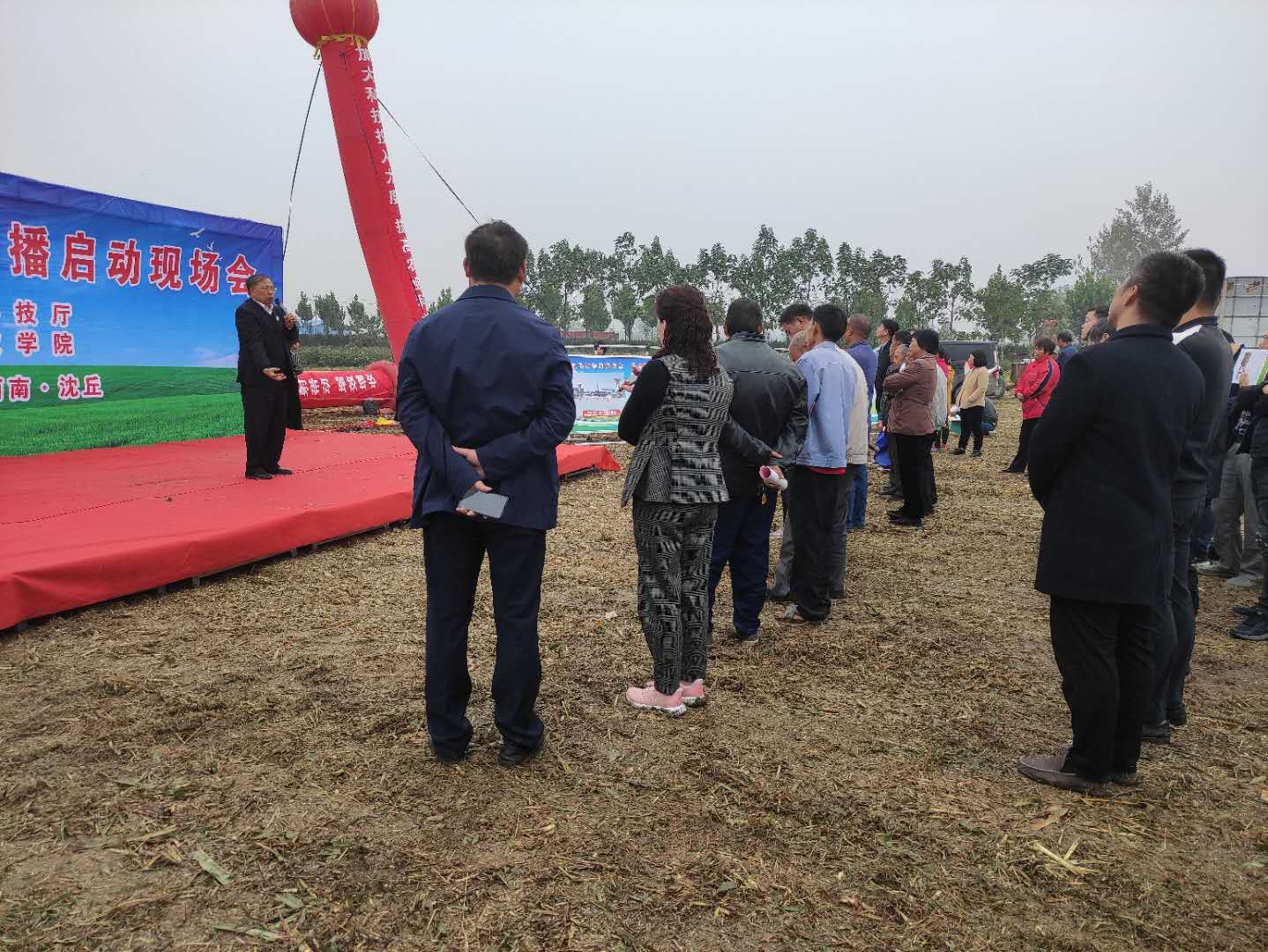 10月13日,沈丘縣周營鎮久酒中梁農業開發有限公司創建的一處萬畝小麥高產示范方基地,一群農民朋友正在深耕整好的麥播地塊,他們一邊探討交流今年的小麥品種選擇、機播下種等相關技術,一邊翹首等待聆聽河南省小麥產業科技服務團的專家教授。這些專家教授深入田間地頭授課,并現場進行小麥播種技術指導。