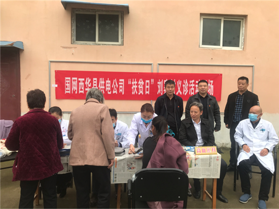 在全國第七個扶貧日來臨之際,為推動精準扶貧工作的深入開展,10月15日,國網西華縣供電公司總經理竇修峰、副總經理南長喜帶領發展建設黨支部書記楊磊、縣人民醫院醫護人員一行到幫扶點劉寨村開展義診活動。