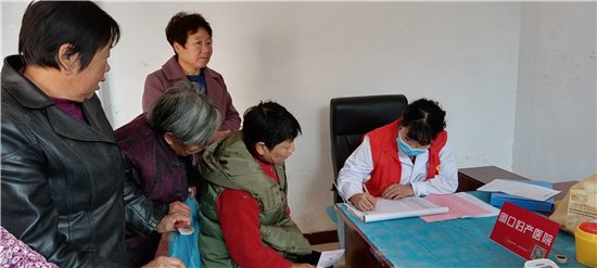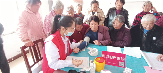 2020年第11個全國“敬老月”和第八個“老年節”,團市委聯合周口婦產醫院走進西華縣李方口村開展敬老愛心義診活動。圖為義診現場。(記者 馬月紅 攝)