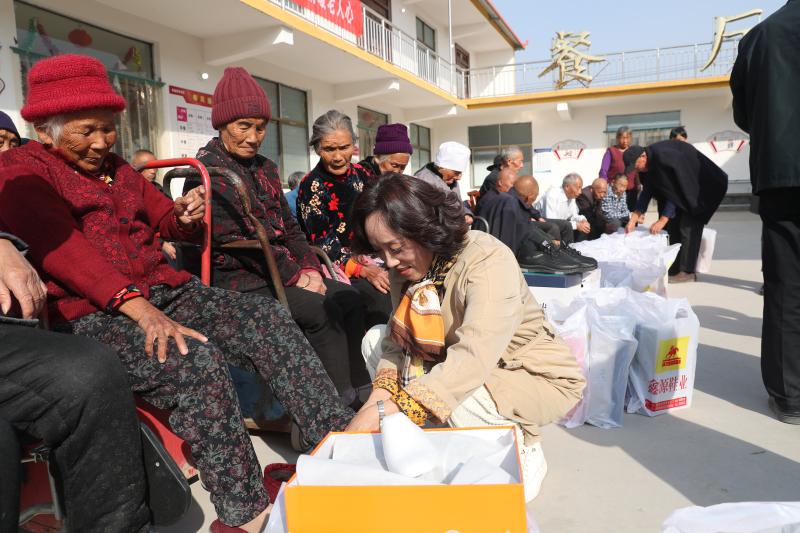 10月23日,在一年一度的重陽節即將到來之際,市人大代表薛華杰、楊輝、姚廣喜、李遠航、呂向陽、陳明華、仝秋月、劉志華等一行組團來到太康縣城郊鄉王東月居村聯養點,給這里的特困老人每人送去一雙愛心鞋,讓老人感受到了“有兒有女”的快樂。