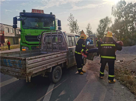 組織實施模擬演練過程中,上蔡縣公安局110指揮中心民警接到群眾報警后,迅即啟動方案,向交警大隊反饋事故相關情況,指令交警大隊事故處理中隊、有關部門和單位趕赴事故現場,實施救援處置。同時,向商水縣110指揮中心通報事故情況,請求協作開展交通事故應急救援工作。