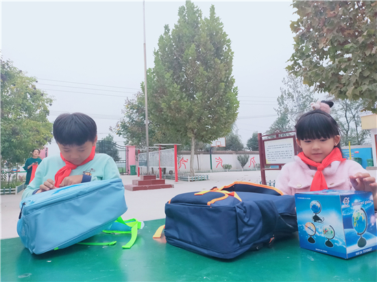 放飛夢想,讓愛翱翔。10月27日下午,西華縣東王營鄉朱營小學的孩子們每人獲得一個大禮包,里面有書包、望遠鏡、地球儀等,這是我市一家公司以“關愛兒童健康快樂成長”為主題開展的“小海豚計劃”。