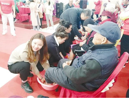 重陽節當天,周口市總工會、周口市教體局、川匯區供銷社在鴻運酒店舉辦“九九重陽節 濃濃敬老情”孝老愛親活動,邀請200多名社區老年人及家屬參加。活動現場,家屬為老人進行了洗腳(如圖),主辦方安排了精彩的文藝演出,博得觀眾陣陣掌聲,讓社區老人過了一個歡樂祥和的重陽節。