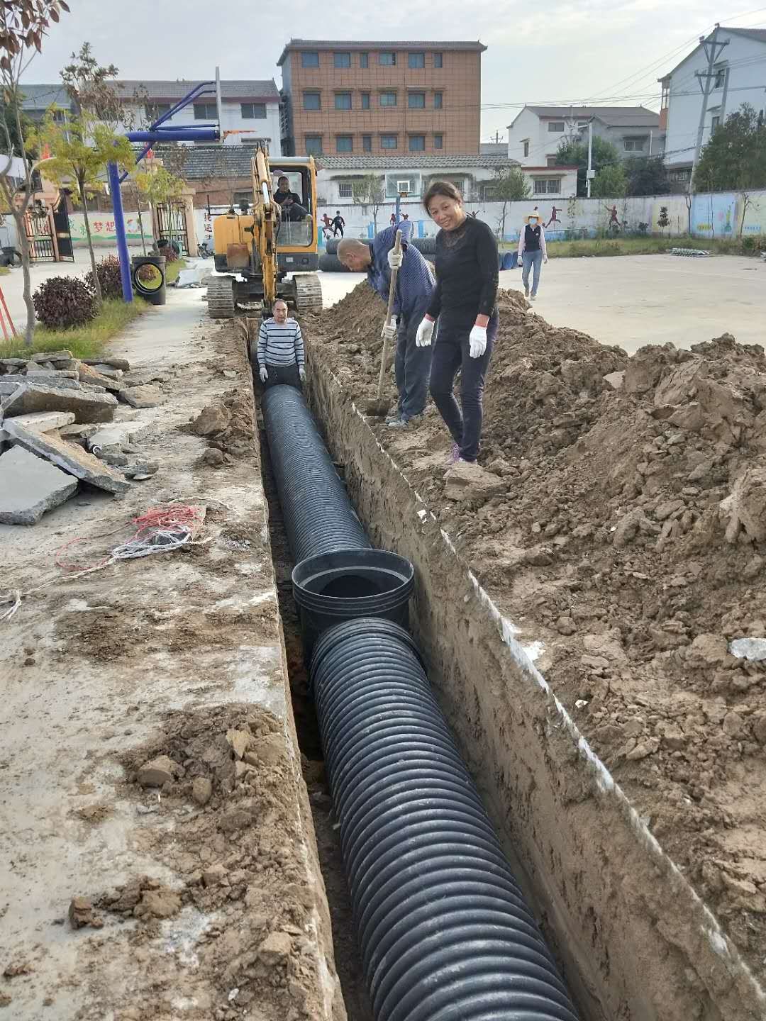 10月27日,西華縣昆山辦事處山子頭小學院內,工人們正在加班加點地鋪設下水管道。