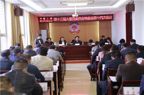 10月28日,中國人民政治協商會議第十三屆太康縣委員會常委會第十四次會議在綜合樓六樓政協會議室召開。縣政協主席王建林,副主席丁明禮、劉玲、王永剛,縣政協常委出席會議,縣委常委、縣政府黨組副書記張雪芳應邀出席會議,23個鄉鎮政協聯絡組長、機關全體工作人員、相關職能部門主要負責人列席會議。會議由縣政協黨組副書記、副主席丁明禮主持。