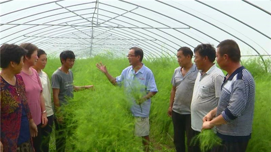 今年30歲的王永振,是皮營辦事處鄺橋社區劉莊村人,2013年大學畢業后返鄉創業。后在當地政府幫扶下,成立專業合作社,目前有社員35戶,種植蘆筍300余畝,其中大棚蘆筍50座,畝產蘆筍1000余公斤,畝均收入8000余元,帶領村民逐漸走上致富道路。