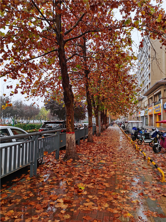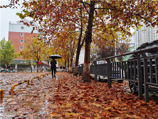 連日來,周口迎來立冬后的首場降雨,雨打落葉,滿地枯黃,雨中的街頭別有一番韻味。從17日起,周口會持續降雨,18日早上一場大雨后,氣溫明顯降低,出門的朋友可要做好保暖、帶好雨具。②9