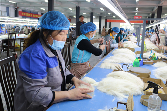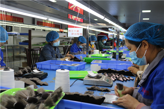 “從簡單的梳羊毛到如今做高檔化妝刷,從產(chǎn)業(yè)鏈的末端做到頂端,從養(yǎng)家糊口到賺外匯,經(jīng)過多年的滾動發(fā)展,鹿邑縣硬是把尾毛化妝刷這種‘小手藝’做成了助推縣域經(jīng)濟(jì)高質(zhì)量發(fā)展的‘大產(chǎn)業(yè)’。目前,全縣大大小小的化妝刷企業(yè)達(dá)1000多家,尾毛出口總量占全國化妝刷原毛出口的80%,年產(chǎn)羊毛3000多噸、尼龍毛9000多噸,生產(chǎn)各類化妝刷1.5億套,產(chǎn)品遠(yuǎn)銷20多個國家和地區(qū)。另外,作為尾毛的衍生產(chǎn)業(yè),羊毛衫加工產(chǎn)業(yè)近幾年的異軍突起,更是激活了全縣創(chuàng)業(yè)就業(yè)的一池春水。統(tǒng)計數(shù)字顯示,近幾年,鹿邑縣持續(xù)圍繞尾毛化妝刷特色產(chǎn)業(yè),強(qiáng)鏈延鏈補(bǔ)鏈,開展精準(zhǔn)招商,化妝刷及配套企業(yè)已發(fā)展到135家,實(shí)現(xiàn)產(chǎn)值50多億元,出口創(chuàng)匯21億;羊毛衫紡織企業(yè)發(fā)展到54家,有電腦織機(jī)6500臺,年產(chǎn)各類針織服裝6000萬件,使鹿邑成為河南省最大的化妝刷生產(chǎn)基地、羊毛衫加工基地,帶動全縣7.5萬人創(chuàng)業(yè)就業(yè)。