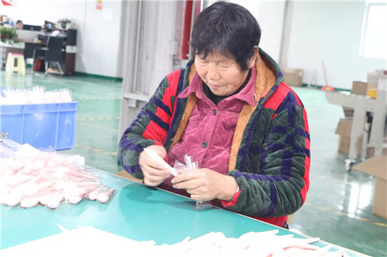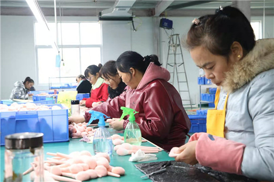 河南雅彩美妝用具有限公司負責人趙廣才介紹,公司主要從事化妝刷、美妝用具加工,十分適宜留守婦女干。車間里的工人基本都是貧困戶和住在附近的留守婦女。在家門口上班,既能掙錢,又方便照顧家人。每天中午公司還提供午餐,工人早上來上班,下午下班不耽誤回家照看孩子。“我上班已經10多天了,再過不久,就可以領工資了,真是高興!”68歲的村民張美榮告訴記者,家里孩子們都大了,自己在家閑著也沒啥事,她就到包裝車間上班,一個月算下來能掙2000多元,活也不重,既鍛煉了身體,又提高了家庭收入。