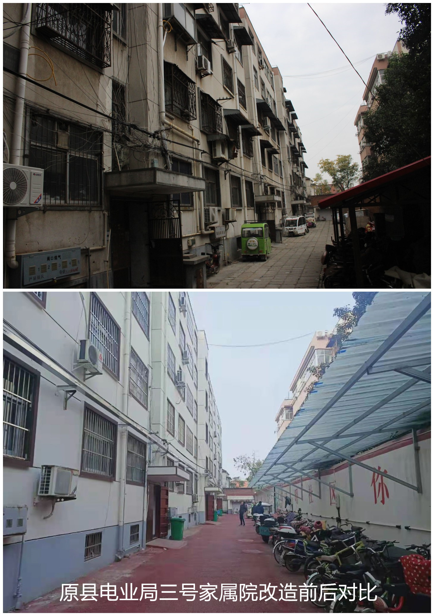 12月22日,陽光明媚,記者一行走進位于西華縣箕城路上的供電公司(原電業局)三號家屬院,只見一棟五層高的家屬樓墻壁被粉刷一新,家家戶戶新裝的不銹鋼防盜窗結實穩固,院里新鋪設的紅色透水混泥土地面平整干凈,配有充電插座的電動車雨棚方便實用,充滿新意的“文化墻”耀眼醒目……