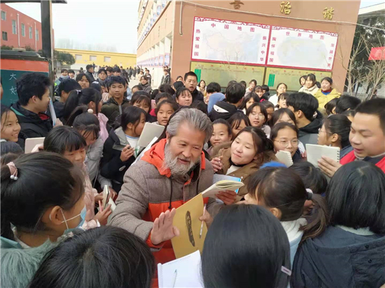 活動(dòng)儀式上,孫培忠發(fā)表了熱情洋溢的講話。他說(shuō),書(shū)畫(huà)是中華民族傳統(tǒng)文化重要組成部分,通過(guò)書(shū)畫(huà)名家進(jìn)校園,讓學(xué)生近距離接觸書(shū)畫(huà)作品,對(duì)于培養(yǎng)學(xué)生的書(shū)寫(xiě)能力、審美能力,豐富中小學(xué)校文化生活,促進(jìn)全面發(fā)展具有十分重要的意義。希望以這次活動(dòng)為契機(jī),把書(shū)畫(huà)進(jìn)校園活動(dòng)組織好、輻射好,為教師、學(xué)生和書(shū)畫(huà)家搭建好共同學(xué)習(xí)與交流的平臺(tái),讓傳統(tǒng)文化走進(jìn)孩子們的心里,讓書(shū)畫(huà)藝術(shù)種子在學(xué)校生根發(fā)芽,開(kāi)花結(jié)果。