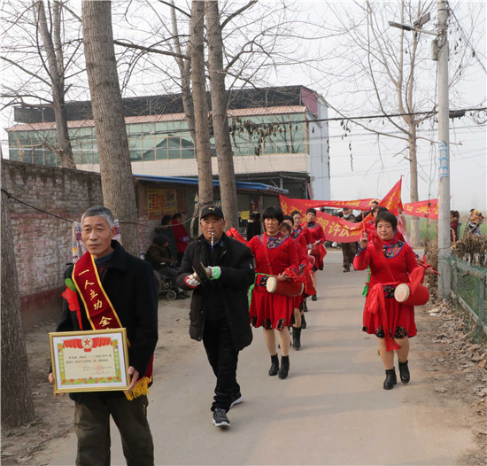 12月28日上午,太康縣符草樓鎮符西行政村鑼鼓喧天、喜氣洋洋。縣委常委、副縣長韓維俊,縣人武部政委郭立君,縣退役軍人事務局局長潘布道,火箭軍某部領導李波,在符草樓鎮黨委書記楊華等陪同下,敲鑼打鼓把三等功喜報和慰問金送到現役軍人許慶副家人手中。
