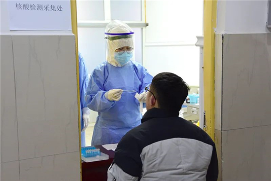 與此同時,院應急辦接到指令后,組織人員沿途疏散就診人群。發熱門診護士按醫生開具的檢查申請單,引導患者和家屬做過核酸標本咽拭子采集、全身消毒后,將家屬引導至留觀室等待檢驗結果,告誡其結果正常后方可離開醫院回家自我隔離14天以上。