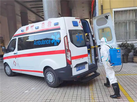 發熱患者經過之處,醫院專職消毒人員和各科室工作人員立即對沿途道路、儀器進行全方位多角度消毒滅殺。