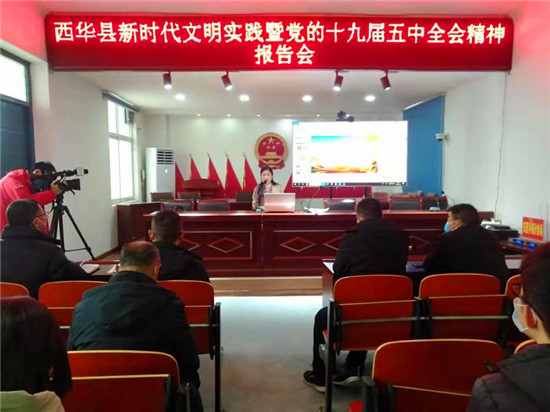 1月15日,西華縣東夏亭鎮舉行“西華縣新時代文明暨黨的十九屆五中全會精神”報告會。周口師范學院馬列主義研究院朱惠娟教授作宣講報告,全體鎮干部、駐村第一書記、工作隊長、工作隊員參會。