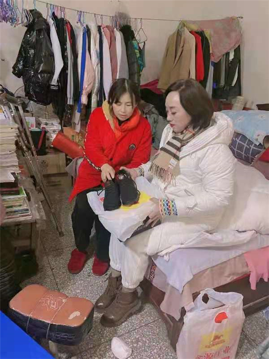 近日,氣溫驟降,戶外寒風凜冽,薛華杰在百忙之中從自己鞋店里挑選三雙最好的運動鞋,到商場里買了三件棉衣、棉被,驅車為王英母女三人送去。在出租屋里,她們像久違的親人見面,嘮著家常。王英高興地講著孩子們上學的努力和爭氣,感謝為丈夫在外打工聯系務工地點。并表示,家里的生活在黨和政府的關懷下,在薛華杰的幫助下,一定會越過越好。