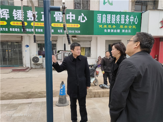 1月20日上午,區(qū)長李湛實(shí)地督導(dǎo)示范街區(qū)建設(shè)和老舊小區(qū)改造工作。區(qū)委常委、宣傳部長、區(qū)政府黨組成員王艷,以及區(qū)住建、城管部門負(fù)責(zé)同志參加活動。