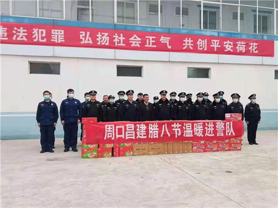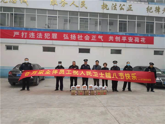 當天一大早,昌建集團便派人送來豬蹄,八寶粥等慰問物資。午飯時間,谷萬家餐飲又為堅守在基層一線的民警、輔警送來了愛心午餐和臘八粥。兩家愛心企業對派出所在轄區的工作表示肯定,對派出所全體民警輔警舍小家為大家的奉獻精神表示敬意。