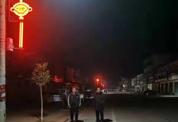 胡志峰是個講誠信、重信用的人,說到做到,迅速展開工作。在他的帶領下,全體班子成員齊心協力,分工合作,有的聯系路燈廠家,催促發貨;有的聯系電力部門,請求委派電力工作人員協助;有的扶梯子、送工具,搞好后勤服務。短短幾天時間,55盞路燈,全部安裝完畢。