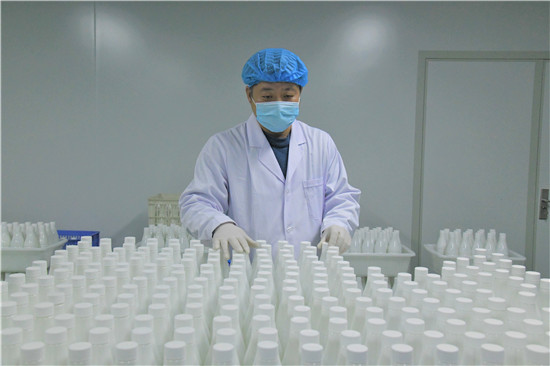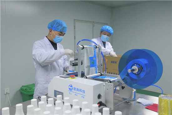 1月28日,在商水縣城關鄉瓦房莊村扶貧企業河南全民康健生物科技發展有限公司無菌生產車間,技術人員正在加班生產次酒精消毒液、免洗手消毒凝膠等消毒類產品。該企業由省檢察院駐村工作隊引進,主要生產次氯酸消毒液系列產品,年產量4000噸,主要用于空氣、手部、寵物、家具、水果蔬菜、餐飲具等消毒。隨著近期我國疫情多點局部暴發,全民更加注重公共衛生,該公司的免洗手消毒凝膠等產品銷售供不應求,訂單較多,加班生產成常態。周口日報·周道客戶端記者 付永奇 楊華麗攝