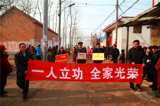 聯合派送喜報小組親切詢問了軍屬家庭情況,有沒有需要解決的困難等。村民們簇擁著與軍屬合影留念。劉衛華表示,今后,要做好為立功官兵家庭派送喜報等多種方式的慰問關懷,不斷增強軍人軍屬榮譽感和歸屬感。