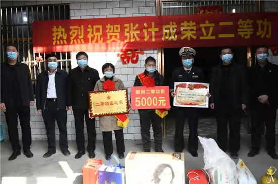 2月2日上午,鄲城縣委常委、人武部政委金仁旺,縣政府黨組成員張仁杰在縣退役軍人事務局負責人的陪同下,到石槽鎮(zhèn)、秋渠鄉(xiāng)走訪慰問榮立二等功的現(xiàn)役軍人于華興和張計成的家人,為其家人送上二等功喜報、慰問金、慰問品及黨和政府的誠摯慰問。